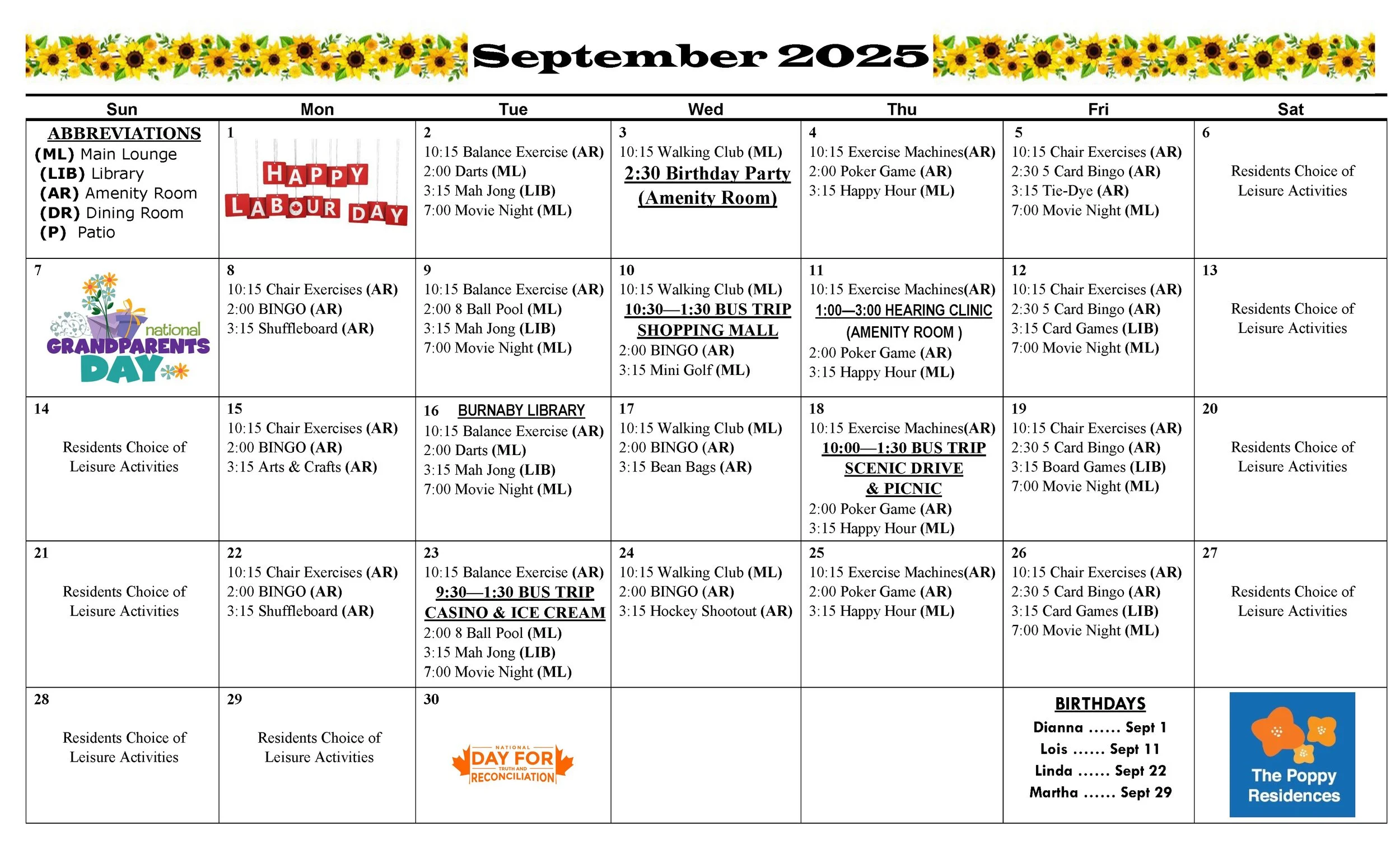 Welcome to September! Check out this month’s calendar for game nights, birthday celebrations and road trips. 🍁🍂🧡